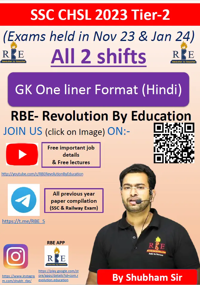GK One Liner Mock PYQ SSC CHSL 2023 Tier-2 by RBE PDF [Hindi Medium]